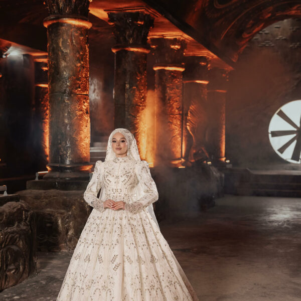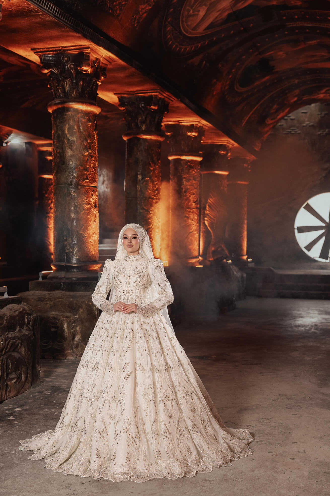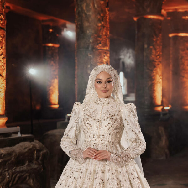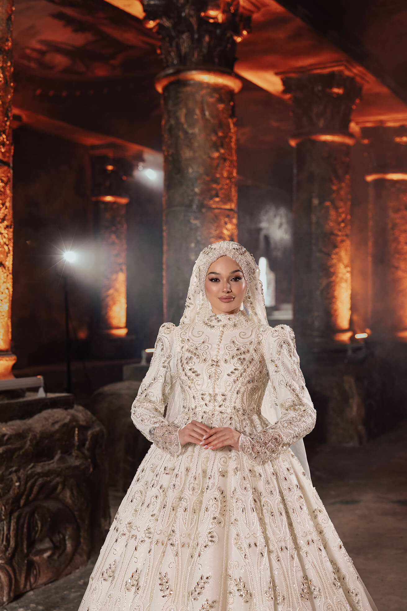 Sade, taşlı, kabarık ya da minimal tesettür gelinlik seçenekleriyle Alya Koleksiyonu; hem klasik hem modern düğün konseptlerine uyum sağlar.