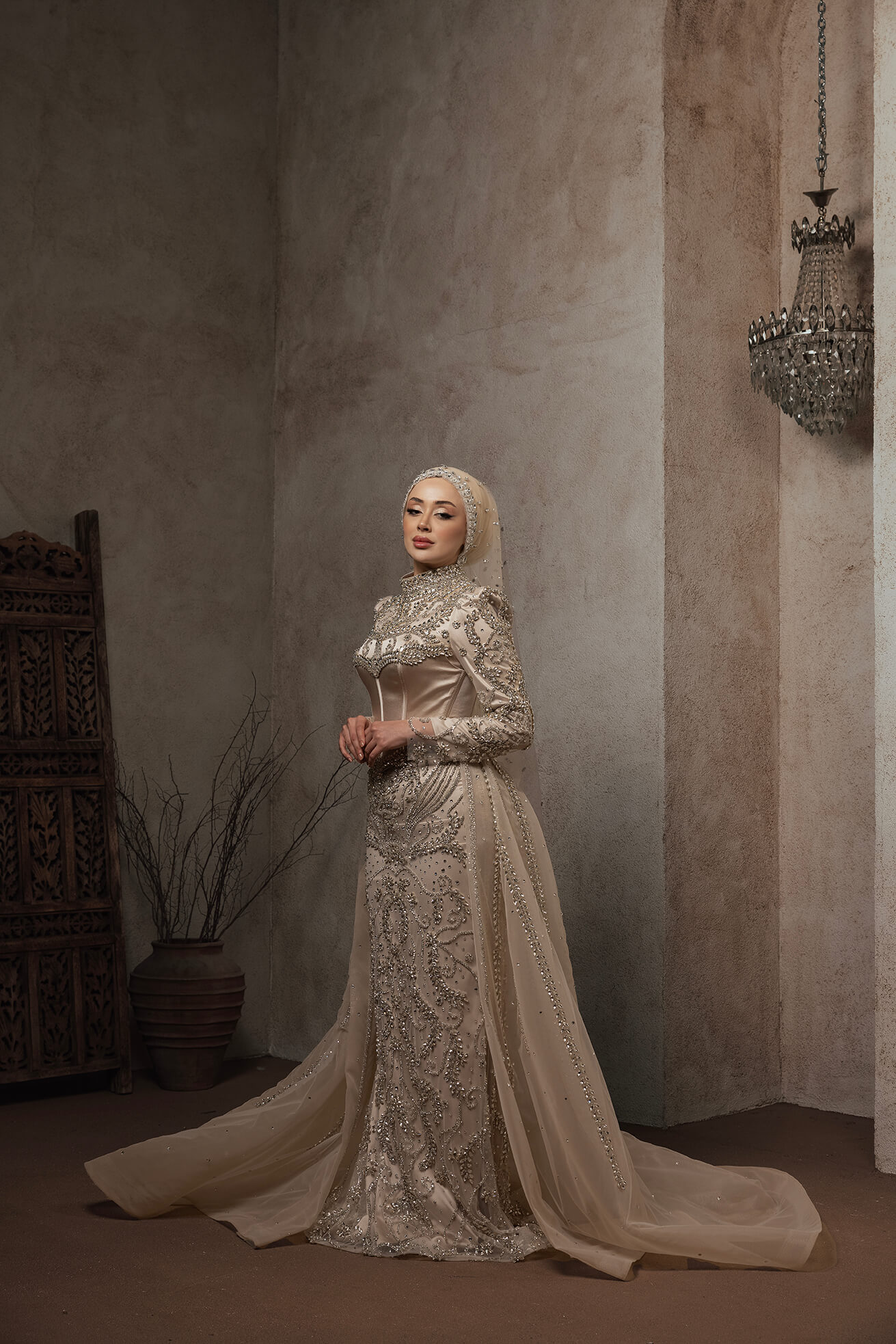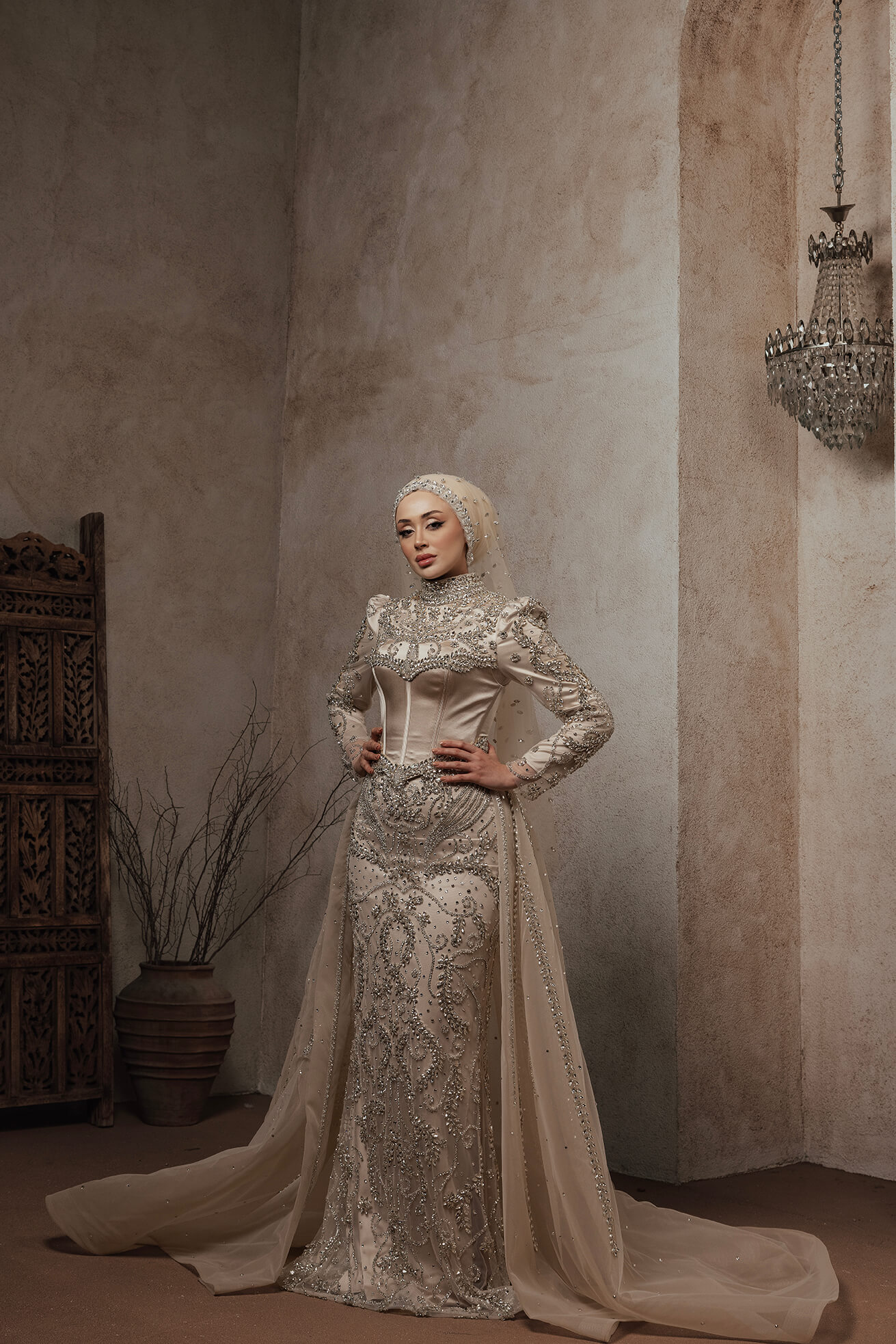altın işlemelerin ışıltısıyla birleşir.